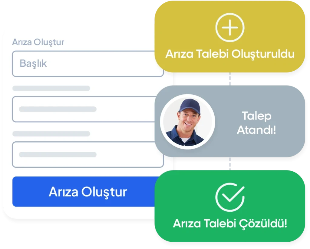 Arıza oluşturmadan çözüme kadar tüm süreçlerinizi takip edin, istediğiniz kişiye atayın, çözüme ulaşın!